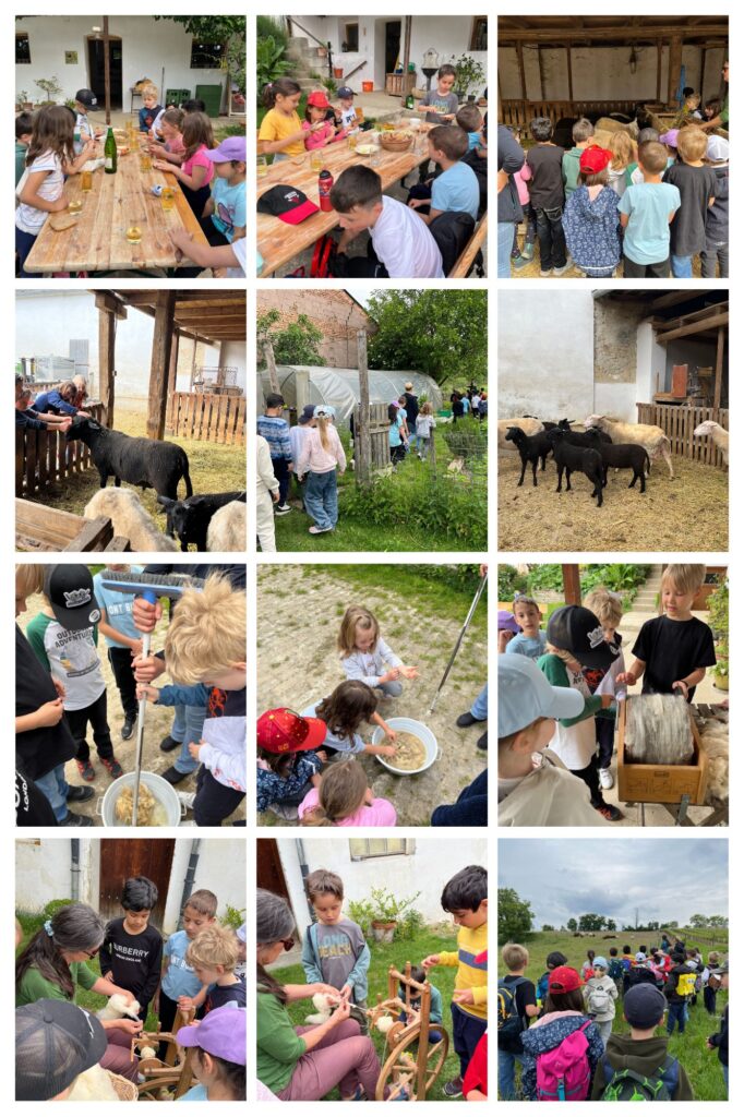 Am 22. Mai 2025 machte die 1. Klasse einen Ausflug zum Bio Bauernhof Vogt in Obersdorf. Zu Beginn gab es eine Jause mit selbstgebackenem Brot, selbstgemachten Aufstrichen sowie Obst und Gemüse. Gestärkt konnte die Führung über das Bauernhofgelände starten. Das Highlight waren die Schafe. Es konnten aber auch Hühner, eine Katze und ein Hund entdeckt werden. Im Anschluss durften die Kinder den Weg der Wolle kennenlernen: Wolle waschen, gewaschene Wolle bürsten und anschließend spinnen. Am Rückweg machten wir noch einen Abstecher zur Schafsweide.